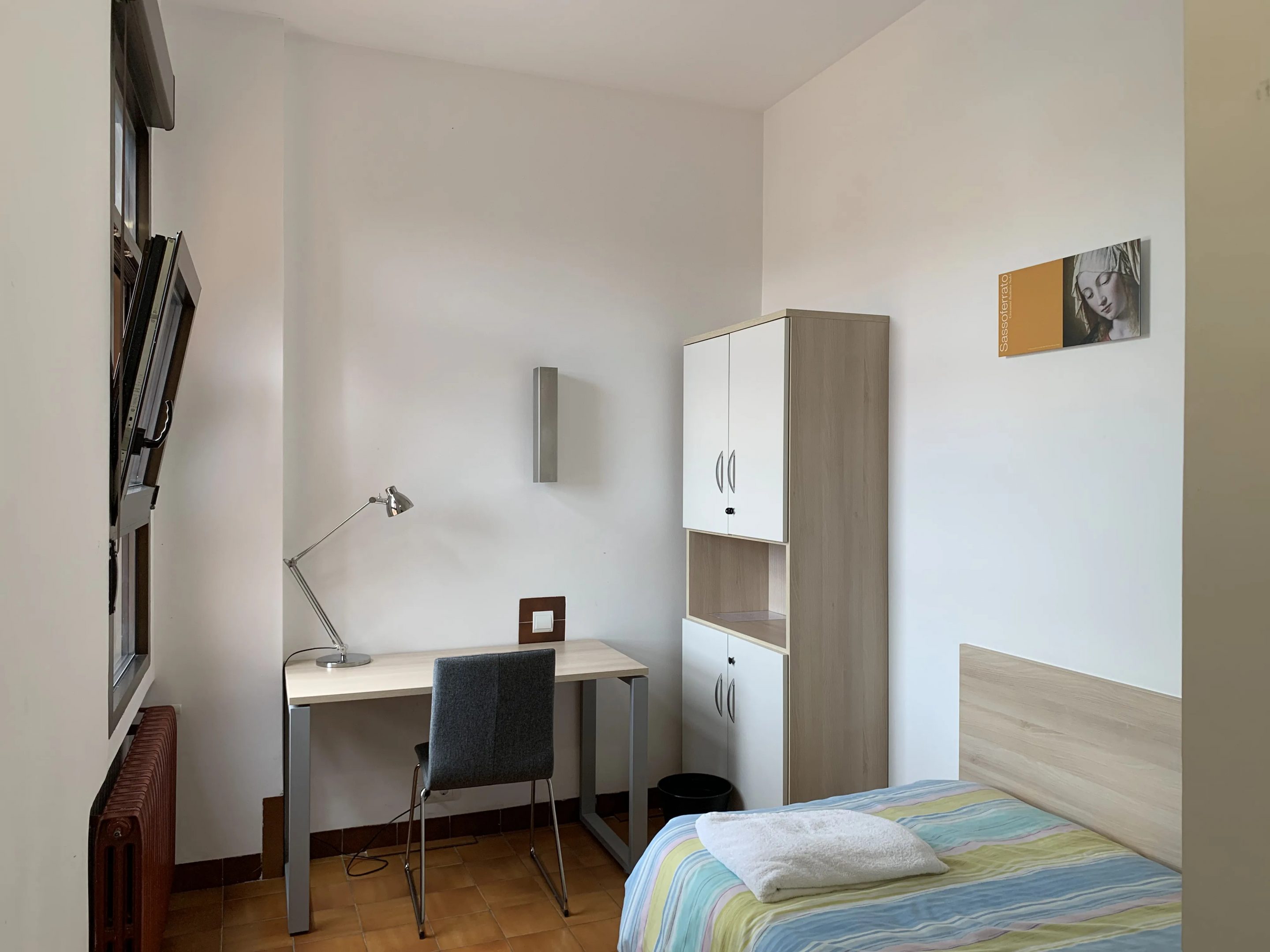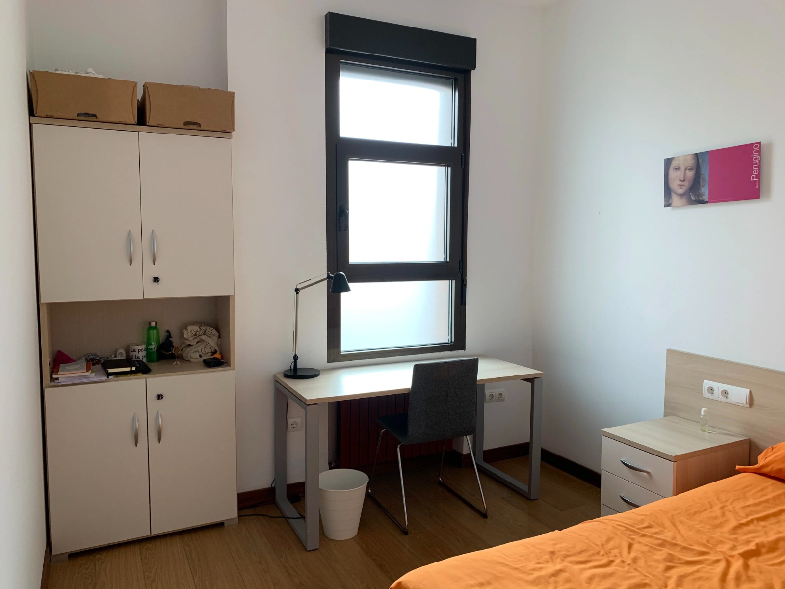 Cada habitación cuenta con mesa de trabajo, estanterías, mesilla de noche y armario empotrado.